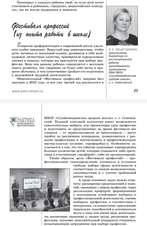 Статья "Фестиваль профессий":опыт проведения профориентационных мероприятий в средней школе"