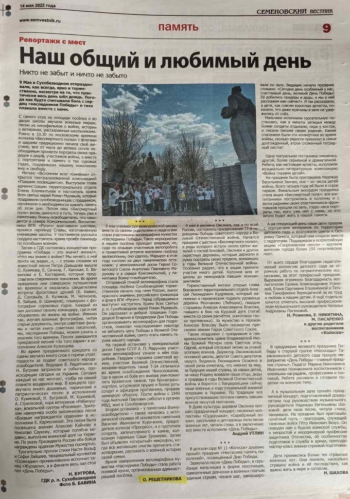 Газета "Семёновский вестник" от 14 мая 2022 года
