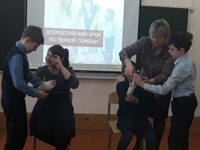 Этап по оказанию первой помощи в школьной игре "Молодецкие игры" | |