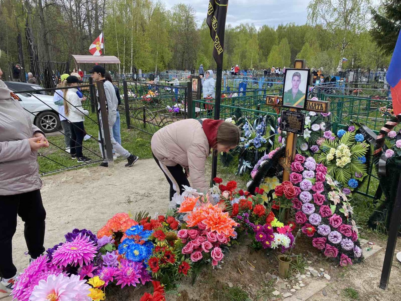 Одна из остановок на месте захоронения участника СВО во время веломарафона "Наследники Победы" | |