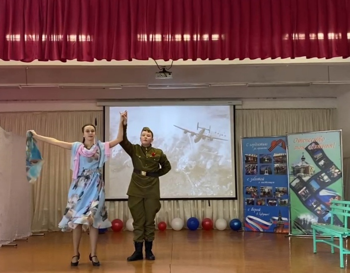 Театрализованная постановка "Ах, эти тучи в голубом", рассказывающая о первых днях ВОВ | |
